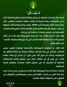 وقال الاتحاد الموريتاني، إن بعض وسائل الإعلام الجزائرية الخاصة، ادعت بأن دولة خارجية تكفلت بنفقات المنتخب الموريتاني، في فترة تحضيراته لـ”الكان” بتونس وإقامته في كوت ديفوار.